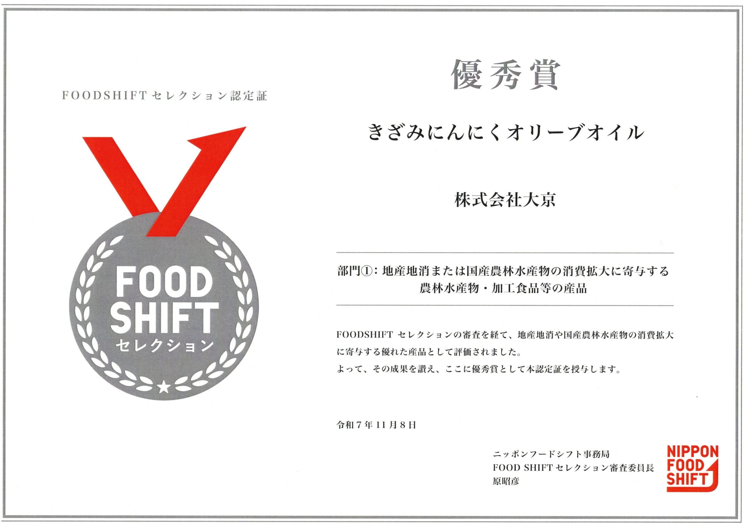 FOOD SHIFTセレクション 優秀賞 受賞のお知らせ